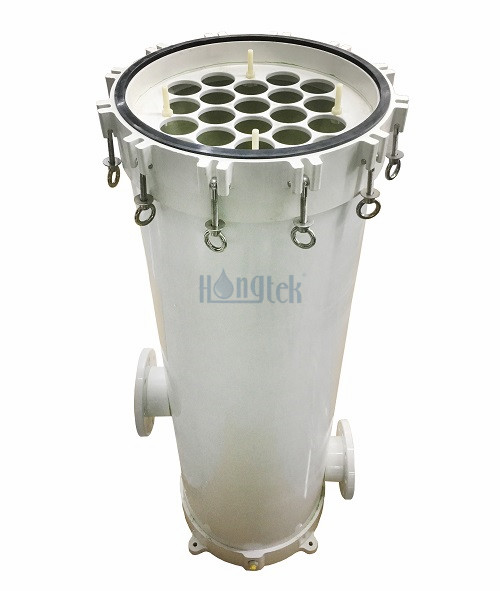 Корпус мультикартриджного фильтра Hongtek CRP серии FRP Multi предназначен для технологической фильтрации, требующей большой скорости потока, с емкостью от 5 до 22 штук картриджей для фильтров для воды глубиной 2,5 дюйма. Корпус мультикартриджа FRP изготовлен из FRP (армированного волокном пластика), замена фильтрующих картриджей производится быстро, легко и безопасно. Корпус мультикартриджа FRP подходит для различных типов картриджных фильтров и торцевых крышек в DOE и SOE, прост в установке и не требует больших затрат на техническое обслуживание. Корпус мультифильтра FRP отличается длительным сроком службы, большим расходом, хорошей грязеемкостью и высокой эффективностью фильтрации. Корпус мультикартриджного фильтра FRP подходит для широкого спектра проектов по обработке воды, таких как предварительная фильтрация RO, водоподготовка, производство продуктов питания и напитков, электростанции, опреснение морской воды и т.д..