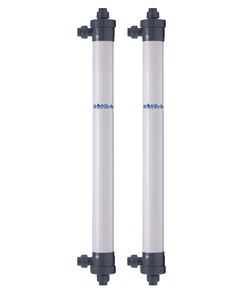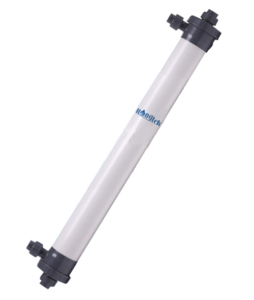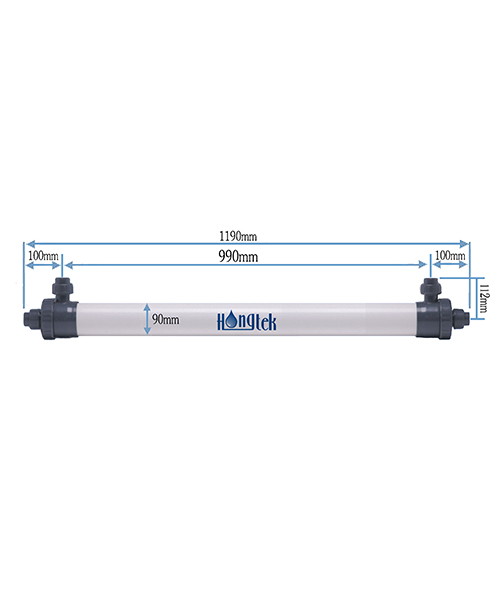 Мембранный модуль ультрафильтрации ПВХ из полого волокна серии Hongtek UFP90 изготовлен из модифицированной ультрафильтрационной мембраны из полого волокна ПВХ (поливинилхлорида), которая обладает такими характеристиками, как большой поток, высокая прочность, устойчивость к кислотам и щелочам, а также устойчивость к мытью лекарственными средствами. Корпус мембранного модуля изготовлен из поливинилхлорида и выдерживает давление более 1 МПа.